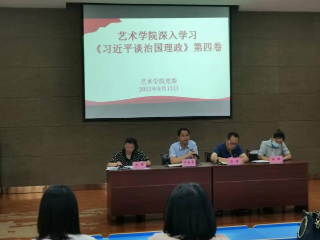 《习近平谈治国理政》第四卷是习近平新时代中国特色社会主义思想的最新成果,以原创性理论贡献标注了马克思主义中国化时代化的新高度。为进一步增强PA视讯集团官方网站学习贯彻习总书记新时代中国特色社会主义思想,准确把握蕴含的新理念新思想新战略,坚定不移地用党的创新理论成果武装头脑、指导实践、推动工作。9月13日下午,艺术公司党委召集全院教职员工举行专题学习会,围绕《习近平谈治国理政》第四卷开展专题学习交流,公司党委书记、经理华菊勇同志参加学习会并讲话。