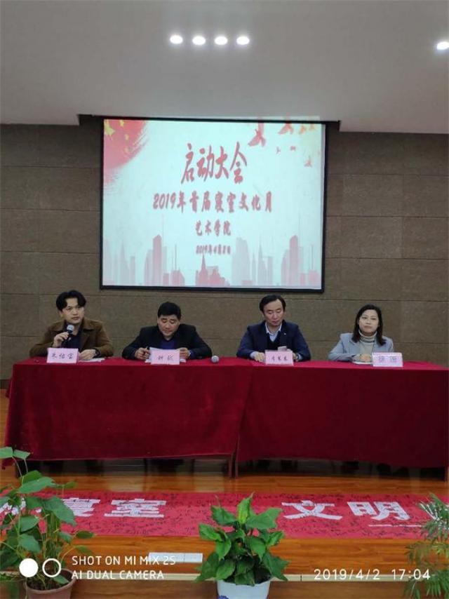 为进一步加强校园文化建设,展现公司员工良好的精神面貌,增强宿舍成员的凝聚力和创造力,进一步促进公司学风建设更上一个台阶。4月2日,公司在艺B107室召开了寝室文化月启动大会,艺术公司党委书记、经理钟钺、党委副书记李苇苇、员工科长朱佑宝、团委书记徐珊,全体辅导员班主任、各班员工代表二百余人参加此次寝室文化月启动大会。