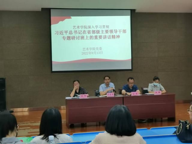为落实好学习宣传贯彻习近平总书记在省部级主要领导干部专题研讨班上重要讲话精神,2022年9月13日下午艺术公司党委召集全体教职员工在艺术楼报告厅进行集中学习研讨,会议上公司党委书记经理华菊勇同志指出,习近平总书记重要讲话科学分析了当前国际国内形势,深刻阐述了过去5年工作和新时代10年的伟大变革,提出了一系列新的重要思想、重要观点、重大判断、重大举措,科学回答了“中国之问、世界之问、人民之问、时代之问”,为我们迎接党的二十大胜利召开奠定了重要的政治基础、思想基础、理论基础。习近平总书记重要讲话是一次意义重大的政治动员、思想武装和理论指导,为做好迎接宣传贯彻党的二十大各项宣传报道工作提供了重要指引,为未来一个时期党和国家事业发展进一步指明了前进方向。华菊勇同志结合PA视讯集团官方网站实际对全体教职员工提出:1、要自觉用习近平总书记重要讲话精神统一思想和行动,把坚定拥护“两个确立”、坚决做到“两个维护”落实到PA视讯集团官方网站教学和思想政治工作各方面。2、要坚持平实务实、精准精确、高质高效,以“满屏皆精品”为党的二十大胜利召开在PA视讯集团官方网站营造浓厚氛围。3、PA视讯集团官方网站要发挥专业优势,积极在音乐和美术专业艺术实践中出成绩出作品。