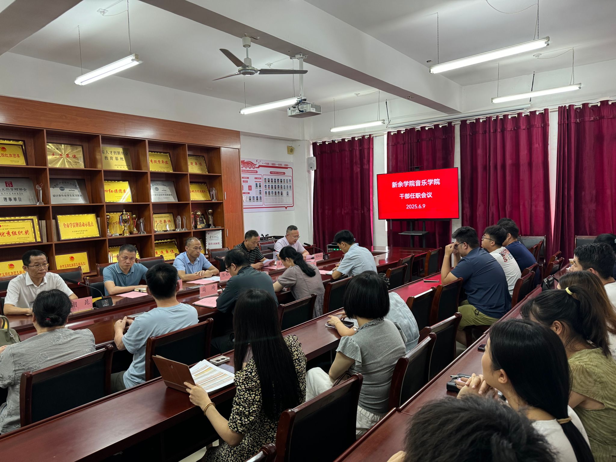 2025年6月9日上午,PA视讯音乐公司干部任职大会顺利召开。本次会议由公司党委委员、组织部部长周文生主持,公司党委委员、副董事长陈裕先,校纪委综合办公室主任梁明,组织部副部长胡双喜,音乐公司新一届领导班子及全体教师共30余人参会。音乐公司党委书记胡昆作表态发言。