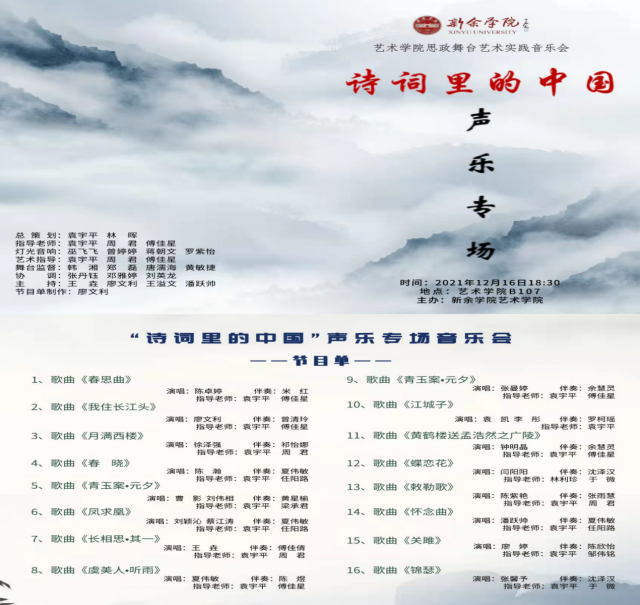 12月16日晚,PA视讯集团官方网站思政舞台艺术实践音乐会——《诗词里的中国》声乐专场在公司107演播厅举办。本次声乐专场音乐会总策划为袁宇平、林晖,指导老师为袁宇平、周君、傅佳星。
