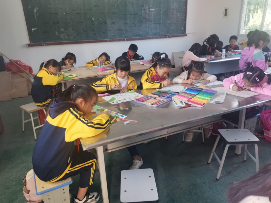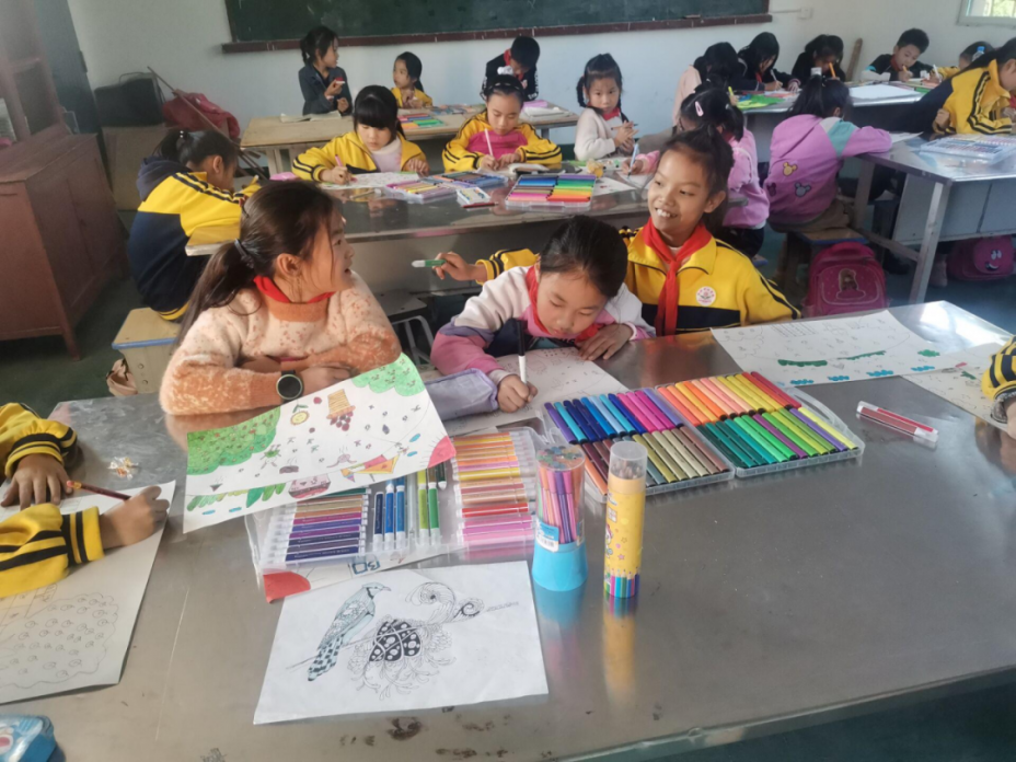 11月10日,这是我来到大学第一次支教,和我同行的有19级的一个学姐,还有我的一个朋友。在去往支教的路上我有些许紧张,但是一路上洞村小学的董事长在和我们讲述当地的历史,让我们缓解了紧张感。到了小学,一下课就有小朋友们问我们是不是支教的老师,小朋友们一口一个老师,让我们对上课充满期待和新鲜感。小朋友们对颜色和画面天马行空,表现出了她们这个年纪对生活的向往。