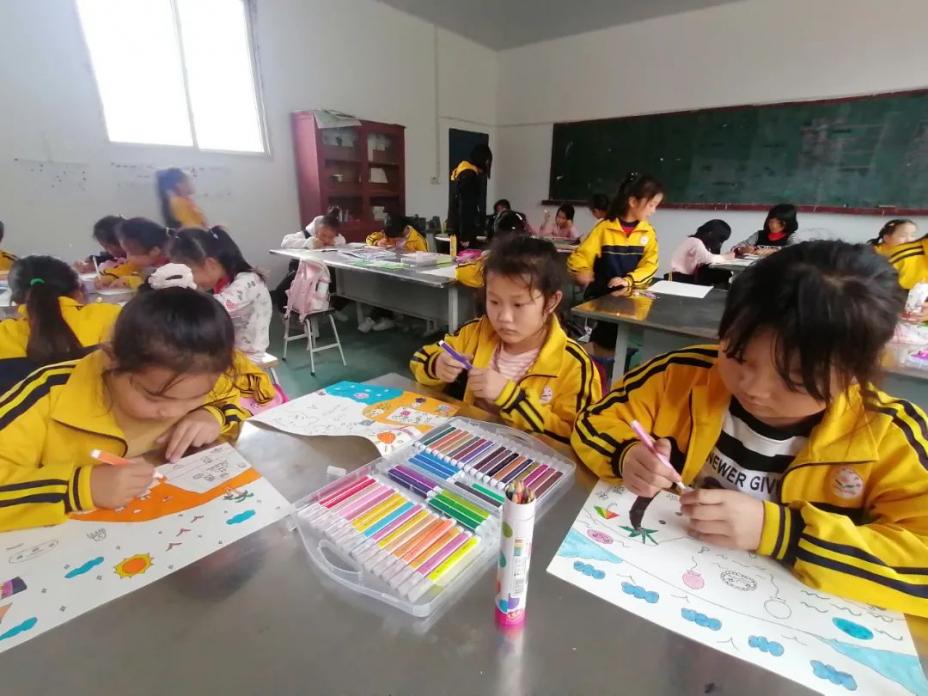 在本次活动中,三位志愿者给洞村中心小学的孩子们开展兴趣班(彩泥、音乐、美术),在手工课上,原本还是姐姐的她,第一次升了“官”,成了老师,在充满欢声笑语的课堂中,更加深了她对幼教事业梦想的坚守;在音乐课上,原本死气沉沉的音符,在她的引领下,竟在孩子们眼中一个个跳动起来;在美术课上,她耐心教学,教孩子们用画笔勾勒出他们对美好生活的向往。