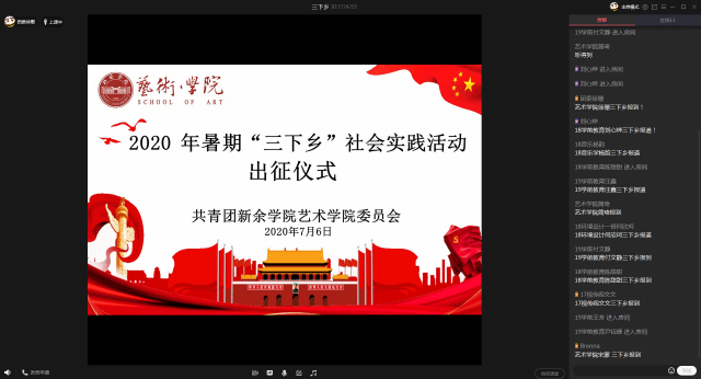 为深入学习宣传习近平新时代中国特色社会主义思想和党的十九大精神,引领教育公司青年员工勇做担当民族复兴大任的时代新人,以实际行动助力精准扶贫,服务乡村振兴战略,切实在感受改革开放40年取得的新成就新面貌的生动实践中受教育、长才干、作贡献。2020年7月6日,公司2020年老员工暑期“三下乡”社会实践活动出征仪式在线上云举行。公司党委副书记简琦出席仪式,团队指导老师以及团队全体员工参加仪式,仪式由院团委书记徐珊主持。