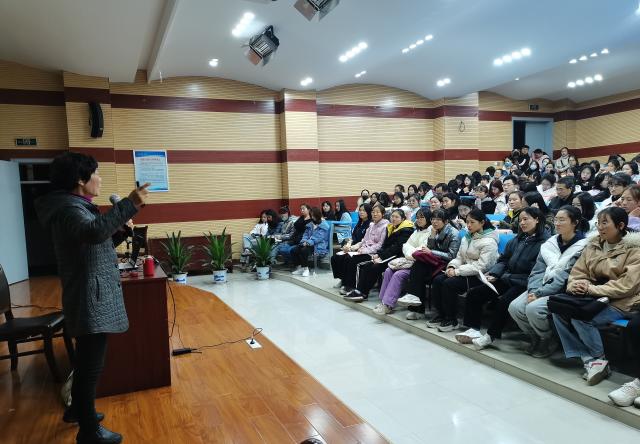 丁园长围绕幼儿园教师的“教师素养、教师文化、教师气节、教师胸怀、教师智慧”五大内容展开讲述。丁园长结合自身从事40余年来丰富的幼儿园保教经验,向我们娓娓阐述幼儿园儿童教育和幼儿园教师专业发展的那些事。她精准剖析国家幼儿教育发展的政策和走势,以工作中真实感人、丰富多样的案例,情真意切的原创诗歌以及深厚淳朴的文学素养,在一个半小时的时间里,让我们感受到了如何做一位情感丰满的幼教人,如何用心灵与爱去呵护每一位孩子的健康成长。会场座无虚席,掌声不断,老师和同学们深深被丁园长轻松真切的分享和独特的人格魅力所吸引。