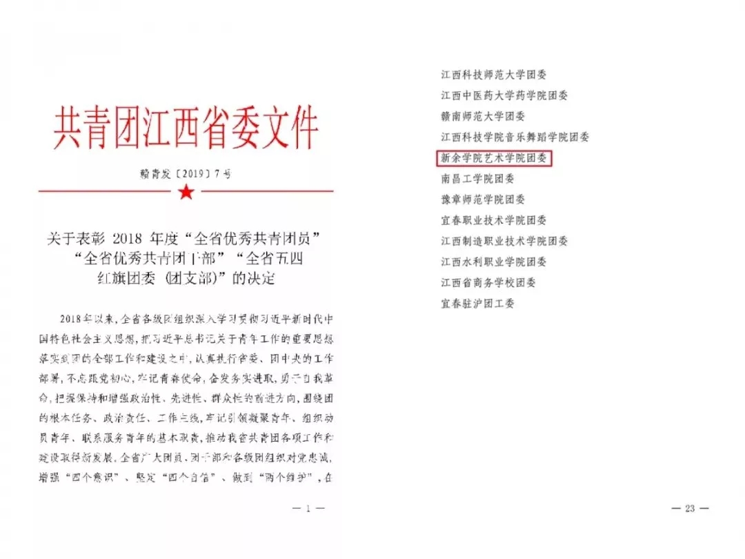 为表彰先进,激励广大团员、团干和各级团组织奋发有力、再创佳绩,发挥先锋模范作用,近日,共青团江西省委印发《关于表彰2018年度“全省优秀共青团员”“全省优秀共青团干部”“全省五四红旗团委(团支部)”的决定》,公司团委荣获“全省五四红旗团委”,16级视觉传达设计班员工张文敏荣获“全省优秀共青团员”!